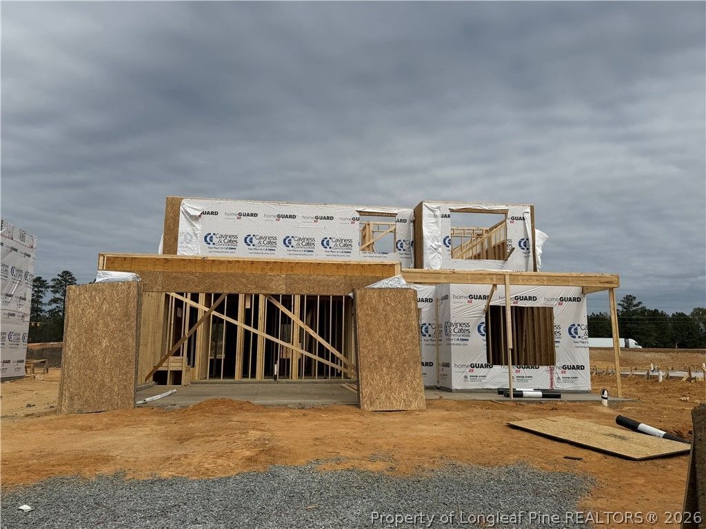 Welcome to the Camellia CC2358 in Brookstone Village, offering 4 bedrooms, 2.5 baths, and a 2-car garage. This thoughtfully designed home features a first-floor primary suite. The main level includes a flex room off the foyer with a stylish accent wall, a mudroom with stacked washer/dryer, and a half bath. The open-concept kitchen features granite countertops, white shaker cabinets, bar seating, pantry, and stainless-steel appliances, and overlooks the great room with access to a covered rear porch. The primary suite offers a dual vanity, walk-in shower, and large walk-in closet. Upstairs you???ll find three bedrooms, a full bath, loft, and a second laundry room. Other highlights include fiber optic internet availability, Energy Plus certification, and a 1-2-10 builder in-house warranty. Located in Brookstone Village, a gated community off Hwy 401 in Raeford, with walking trails, a dog park, and community grill area, close to shopping, dining and nearby hospitals.